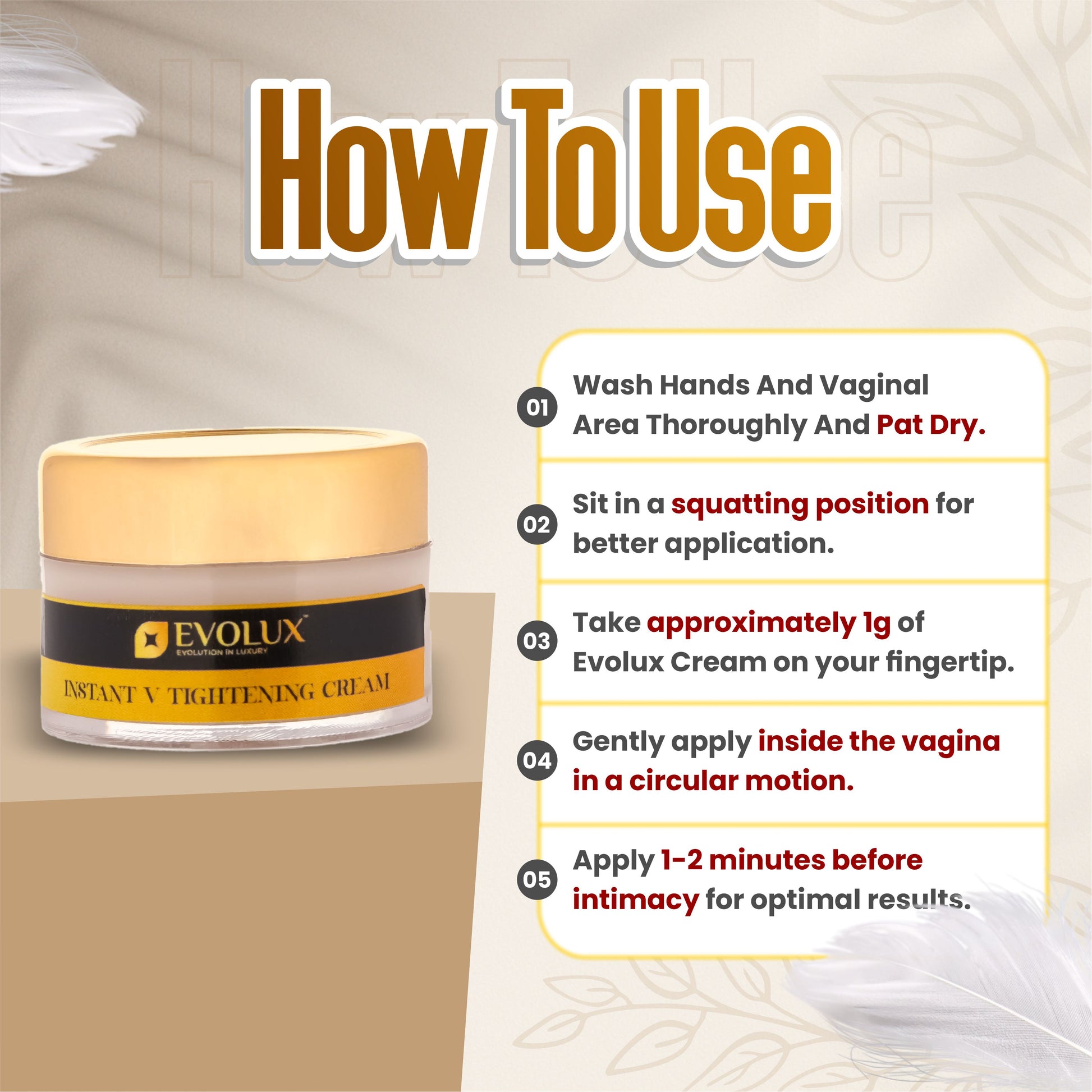 Elevate your intimate wellness with Evolux - Instant V Tightening Cream – a natural, safe, and effective solution for a firmer, refreshed, and confident you!